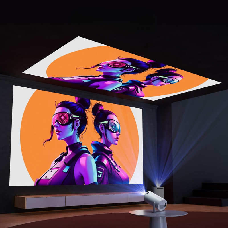 Noshio has a native resolution of 1280×720P (HD) with support for up to 4K content playback. You can project anywhere from 20 to 130 inches, creating a true cinema experience. The projector features 200 ANSI lumens brightness and includes both automatic and manual keystone correction for perfect image alignment on any surface.